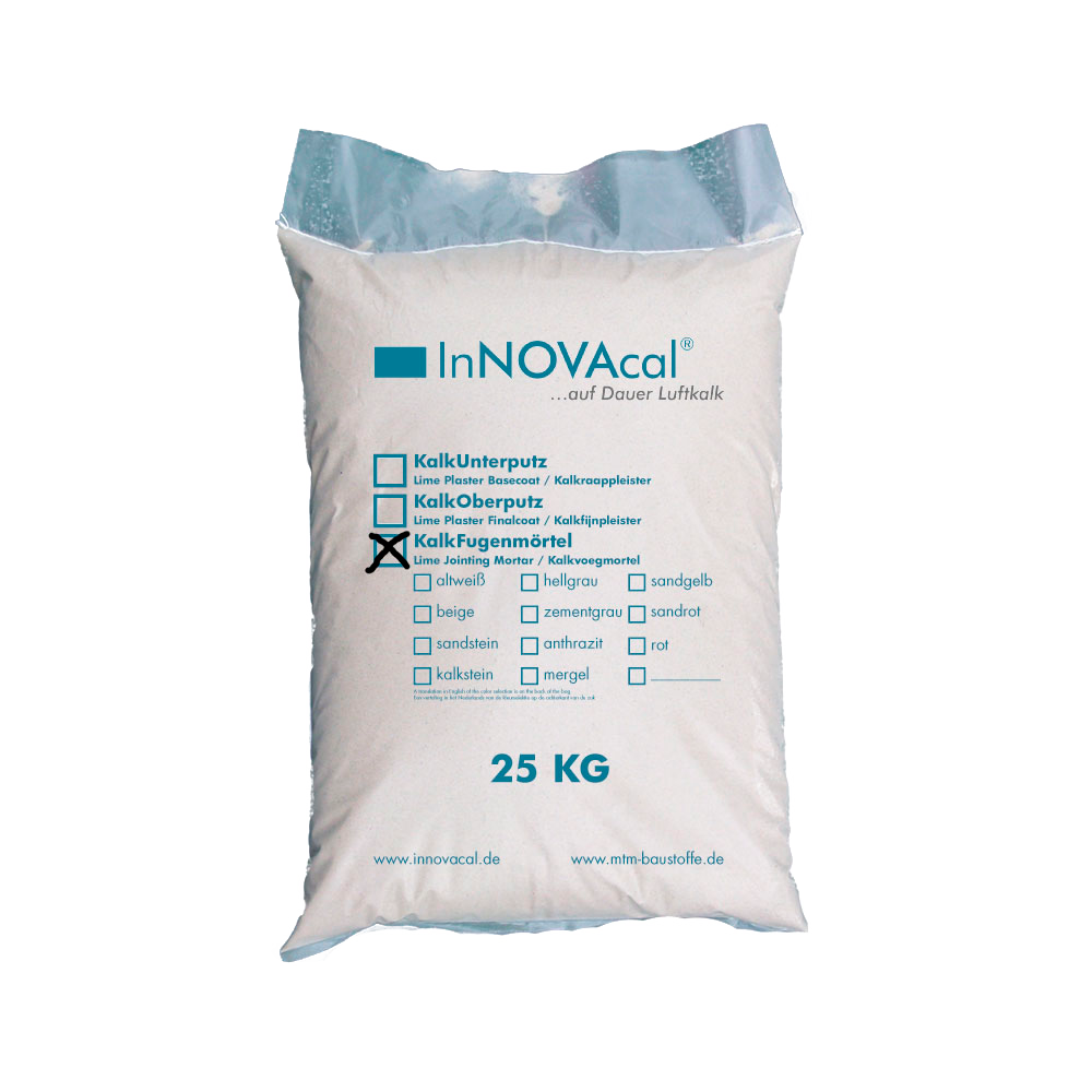 Mit InNOVAcal KalkFugenmörtel erhältst Du einen Mörtel der Mörtelgruppe P I, gemäß DINV18550 und DINEN998-2. Er enthält weder hydraulische Bestandteile noch weitere Zusätze wie Polymere oder Acrylate – reine mineralische Qualität für Deine Bauvorhaben!